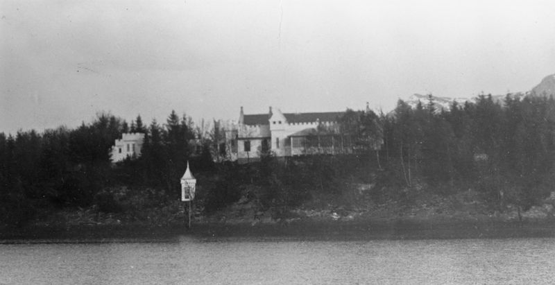 A small wooded islet close to Store Godøy (Great Godøy) has for several years been called Solstråleøya (The island of sunrays). Trees like linden, beech, birch and larch and Douglas fir grow here and the ivy lies as a green carpet on the forest ground between holly and wild roses. John Musgrove, probably one of the many Englishmen who visited Godøsund Hotel in the 1880s, obtained a title to the two islets Erleholmen and Olderholmen in 1889. Here he built a castle-like house, a very fairly-tale castle, with additions and extensions “something in between a greenhouse and a theatre set” as King Olav put it. Through a gift in 1906 Norway’s Crown Prince became the owner of “Solstraaleøen”. The island was in the royal family until 1991. Then the property was transferred to Tysnes municipality to the benefit of the people in Tysnes to be used for recreation for the physically disabled.