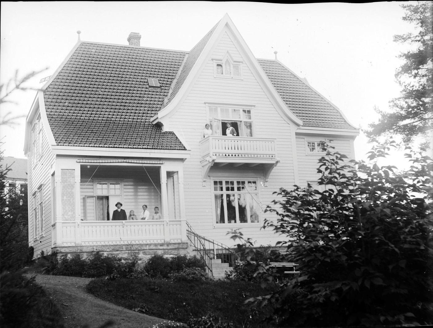 Dette er overlækjarbustaden på Lyster Sanatorium. Bak til venstre skimtar me delar av hovudbygningen.