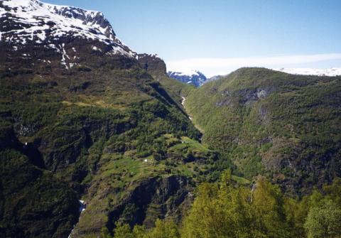 Due south of the farm there is a big gully called Koldegjelet. From time to time, a big snow avalanche called "Koldao" tumbles down into and down the gully. It starts high up in the mountainside, sometimes ending up out on the fjord. This avalanche creates an enormous gust of wind, and it may knock people and animals off their feet. On a winter's day in 1884, a huge avalanche broke loose. Jørgen Stegen and his sister Hansina were then out on the fjord in a boat. The boat capsized and both drowned. Their mother had been a widow since 1874, and she got problems running the farm. After some years, she moved in with relatives at Styvi in the Nærøyfjord.