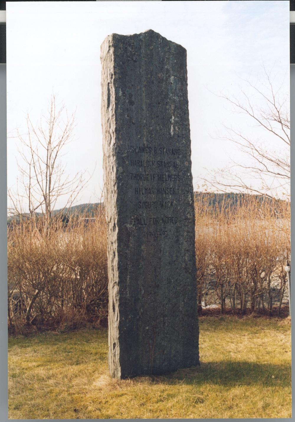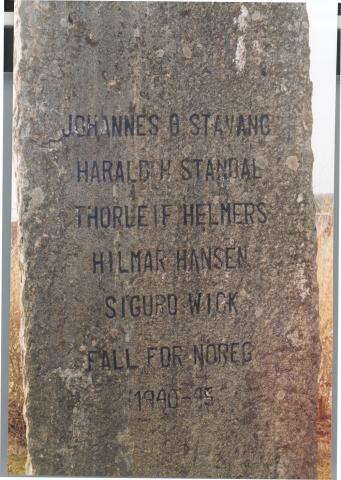 On the stone are carved the names of the five men who died in action and the inscription DIED FOR NORWAY * 1940 - 45