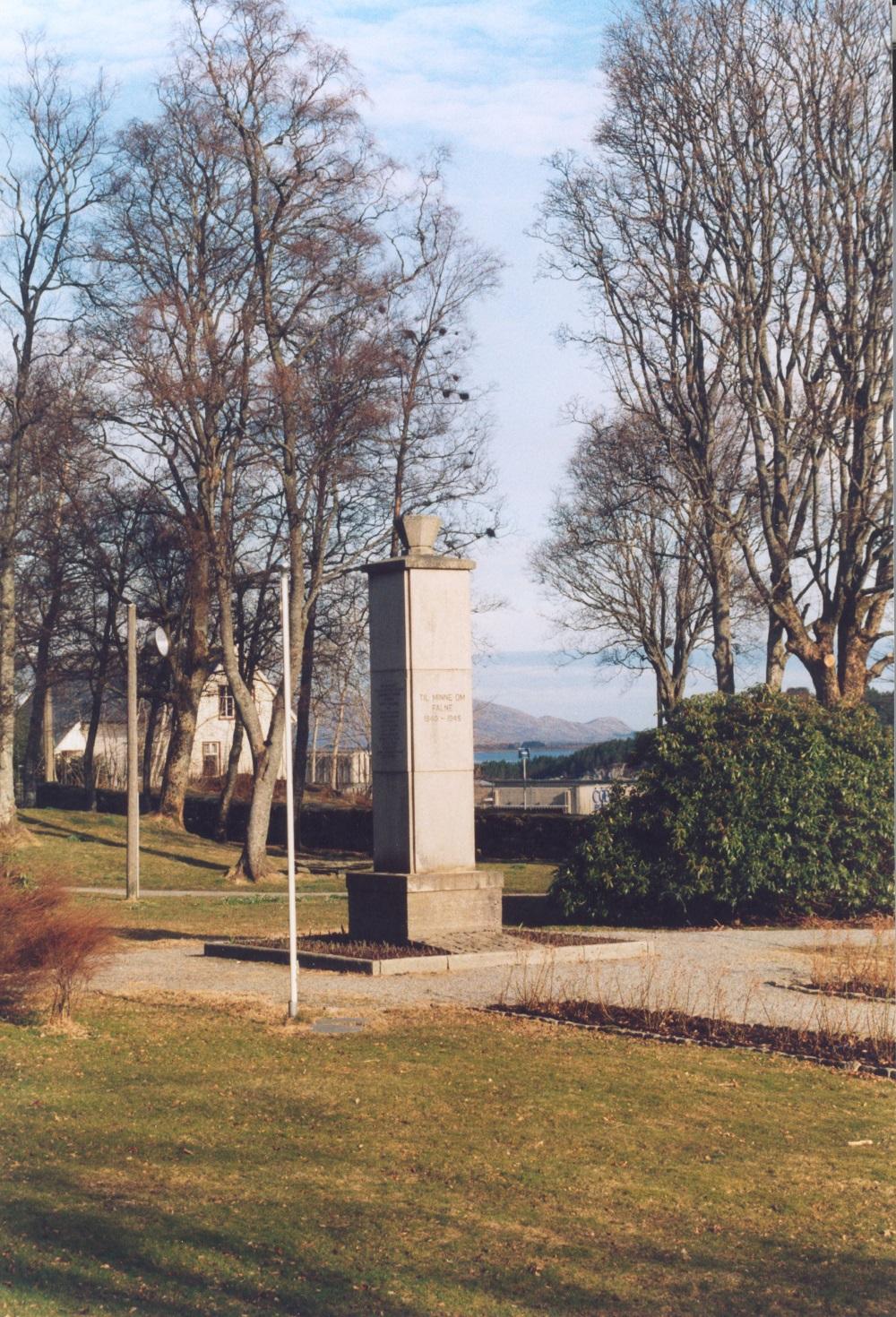 This picture taken in the spring of 2001, shows the memorial by the Florø church commemorating those who died from Florø during the war. A/S Vestlandske Stenhuggeri made the 8.5-tonne memorial in granite that was transported to Florø in 15 sections.