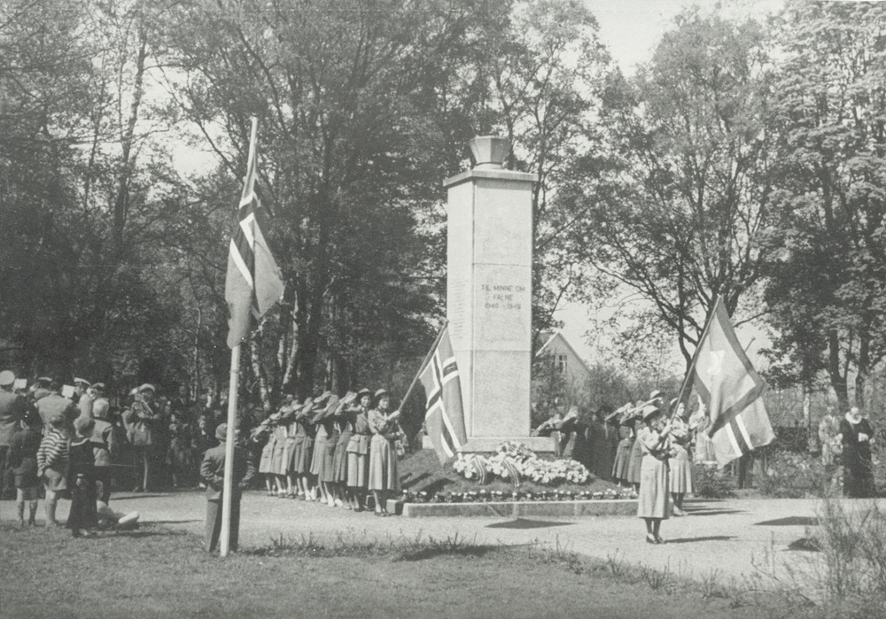 In late summer, the memorial committee had collected some 12000 kroner that was deposited in A/S Fjordenes Kreditbank. Hundreds of individuals had contributed, mostly through collection lists in all the school districts.