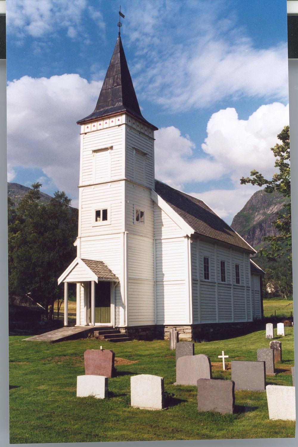 The organ from 1985 has four registers, built by Jehmlich Orgelbau in Dresden. The church bell has the inscription: "Støpt i Bergen av J. T. Becker 1851(moulded in Bergen by J. T. Becker 1851)." It is actually a remoulding. The legend has it that a poor woman who was called Myra-Synnøve (Synnøve from the marsh), who had been in gaol, said: "When I am buried, they will toll so hard that it splits." And so it happened when she died in 1848. The bell most likely dates back to the oldest church in the 1600s.