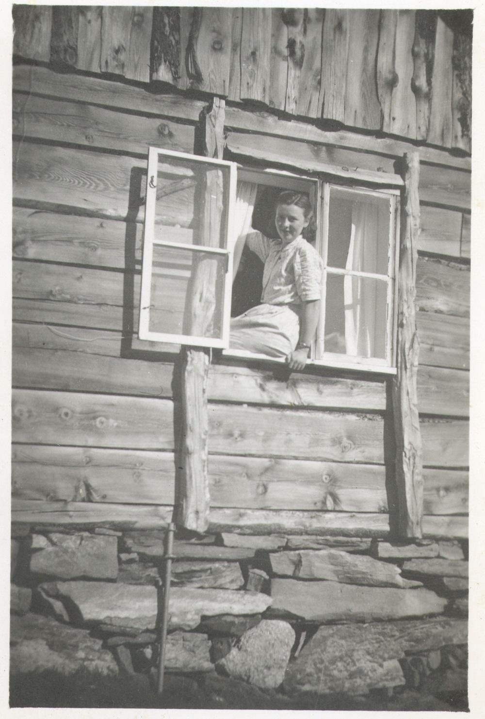 Johanna Steig, married Kvåle, in the window in her first summer as milkmaid.
