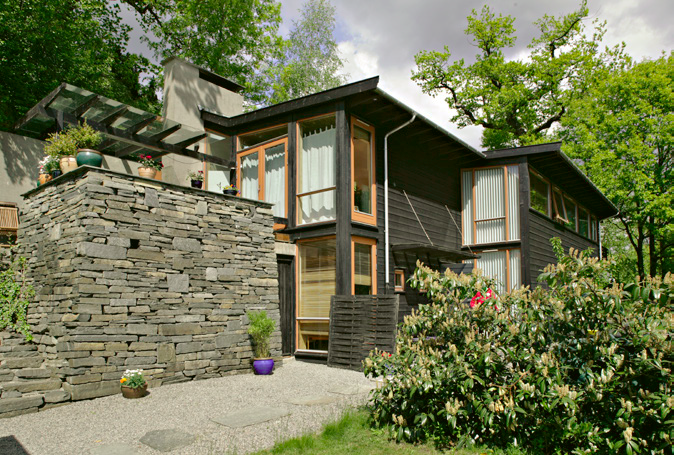 Huset som ligger i en østvendt skråning, er plassert på langs av den smale tomten. Det er tegnet av Tor Helge Valen i 1996 og det ble lagt vekt på å utnytte utsikten og ta inn det som er av sol.