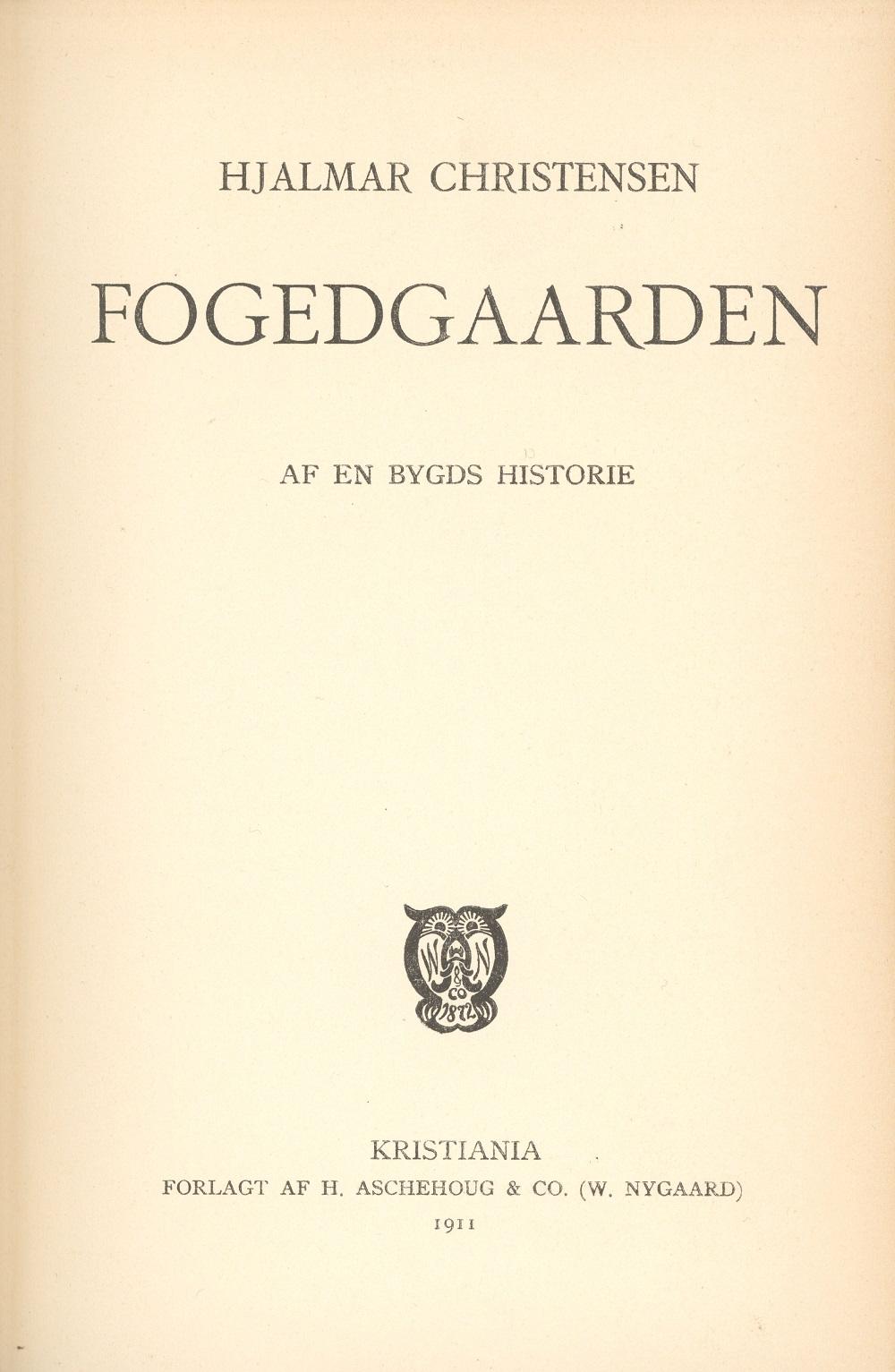 "Fogedgaarden (the bailiff farm)", which was published in 1911, embraces the period from 1839 to the 1890s. The author describes life at the bailiff farm with particular focus on five bailiffs, a farmer's daughter, and a milkmaid.
