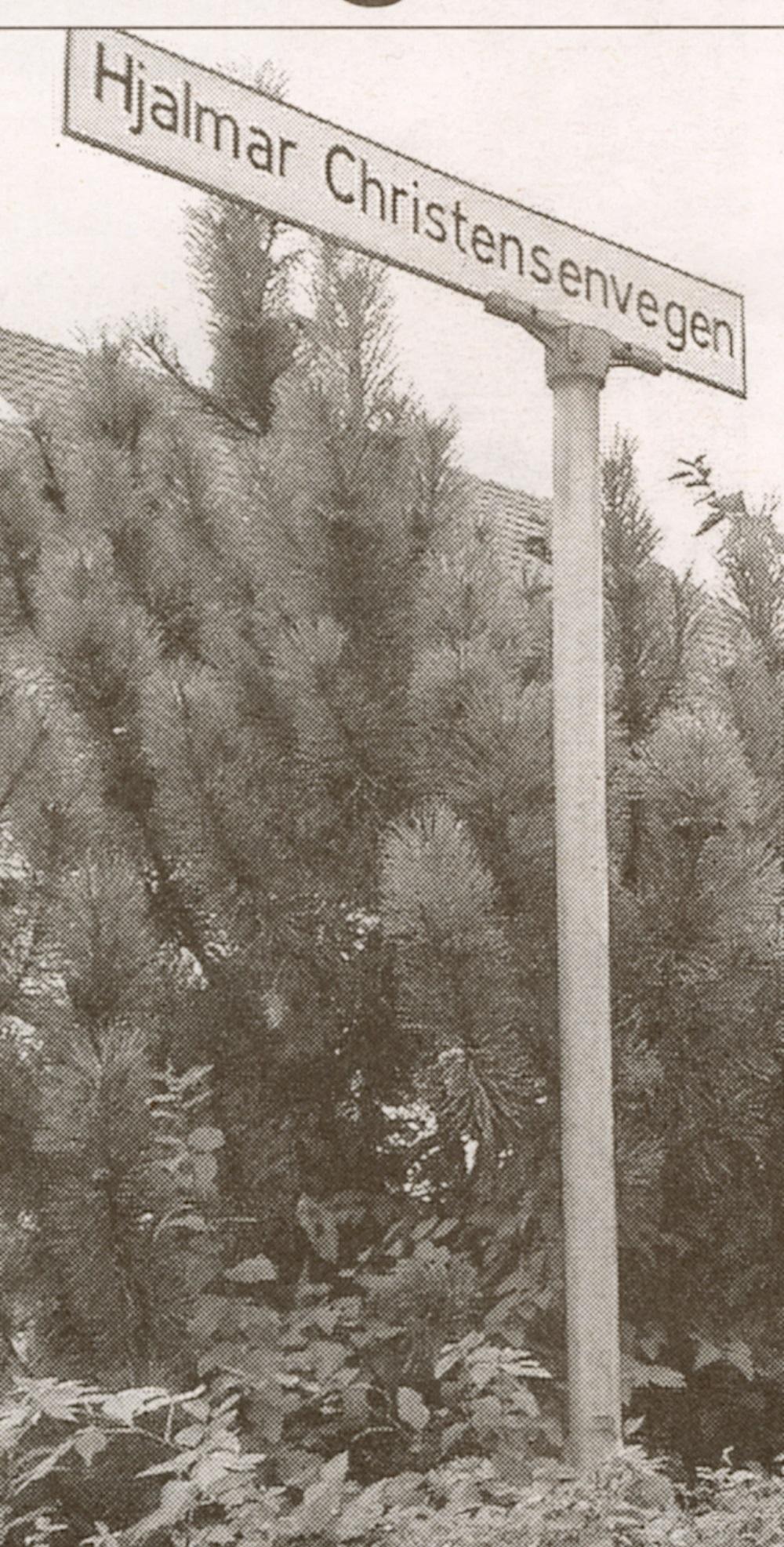 A road in Førde has been named after Hjalmar Christensen. The road goes from Prestebøen to Kyrkjevegen. Parallel to Hjalmar Christensenvegen is Elstervegen, named after the family of his uncle.