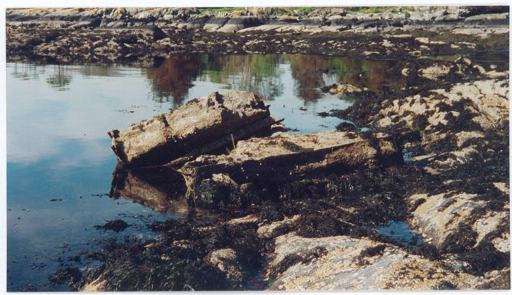 The shoreline at low tide where "Aladdin" was stranded in the winter of 1925. The remnants of the concrete base can be seen to the extreme right.