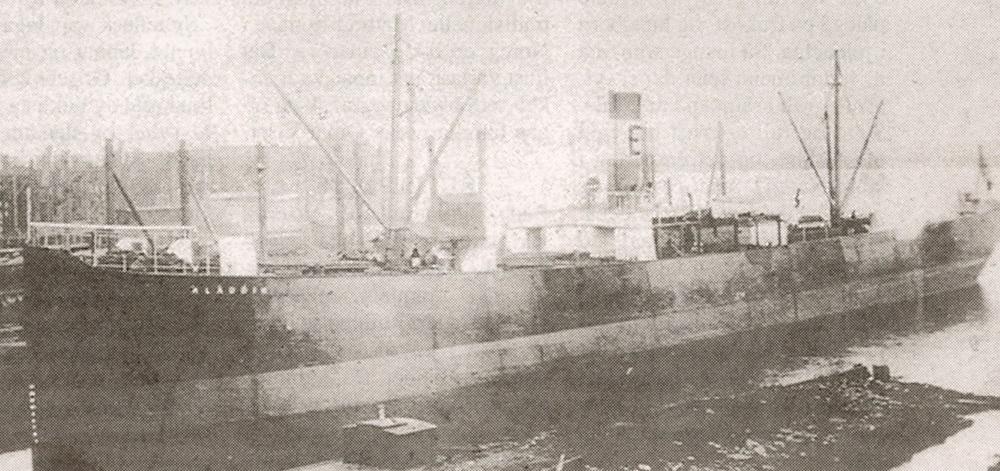 The cargo ship "Aladdin" of 3113 gross register tonnes belonged to the shipping company of J. T. Farsøe & Co. in Oslo. The ship was on her way from Gothenburg to Narvik in ballast. (A ship sailing in ballast lies so high in the sea that the propeller does not always reach below the surface). "Aladdin" had a crew of 27, and the captain was Trygve Nergaard, aged 42.