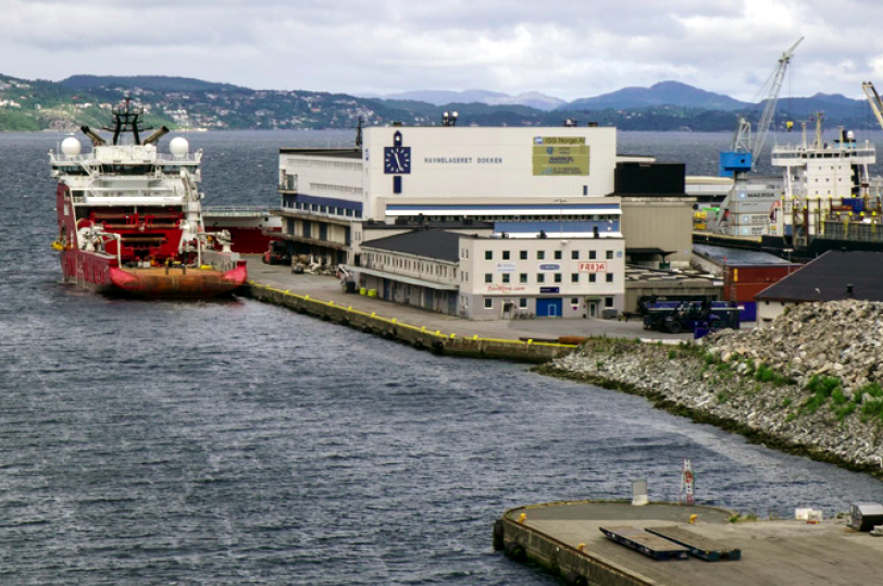 Bergen Havnelager ble tegnet av Eystein Michalsen i 1961 og er en lagerbygning på fem etasjer med 4100 kvadratmeter lagerplass i hver etasje. Godsterminalen på Dokkeskjærskaien har vært en verkebyll for Bergen kommune, men etter flere tiår med diskusjoner er spørsmålet om ny lokalisering av den bergenske godshavnen nær en løsning pr. 2018.