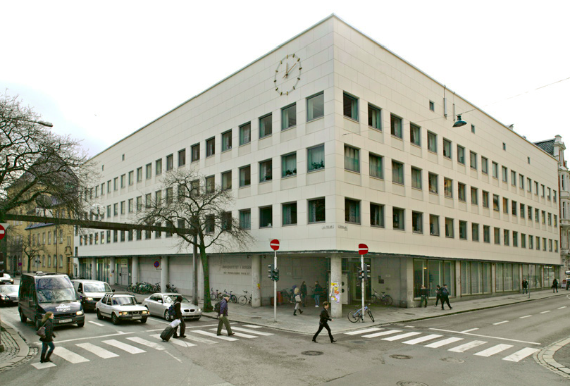 Dette er en streng, modernistisk bygning, bestående av en enhetlig blokk tegnet av Per Grieg i 1954. Den øverste delen er vindusløs, med unntak av noen «glugger». Fasadens regelmessig fordelte vinduer er satt inn i bygningsblokken uten noen form for markering, med den laveste vindusrekken nederst. Hadde opprinnelig inntrukket første etasje som blant annet rommet en bensinstasjon og butikklokaler. Bygget er i dag overtatt og ombygget av Universitetet i Bergen.