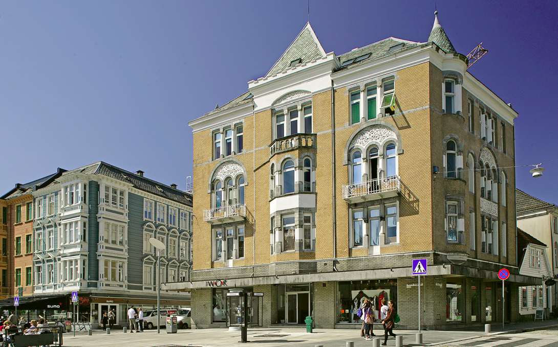 Vestre Torggate 1 er en staselig bygård med klebersteinsdetaljer og dragestilsornamentikk. Bygningen er tegnet av Jens Z. M. Kielland i 1896 og er inspirert blant annet av Urnes stavkirke, som Kielland restaurerte i 1902.