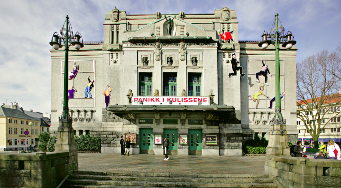Teateret har sokkel av massiv naturstein, fasader med pusset mur i ulike varianter og geometriske ornamenter, både naturinspirert dekor og masker som symboliserer akitivteten i teaterbygget. Halfdan B. Grieg sørget for en vellykket forlengelse av bygningen i 1955. Bygget fikk A.C. Houens fonds diplom i 1912.