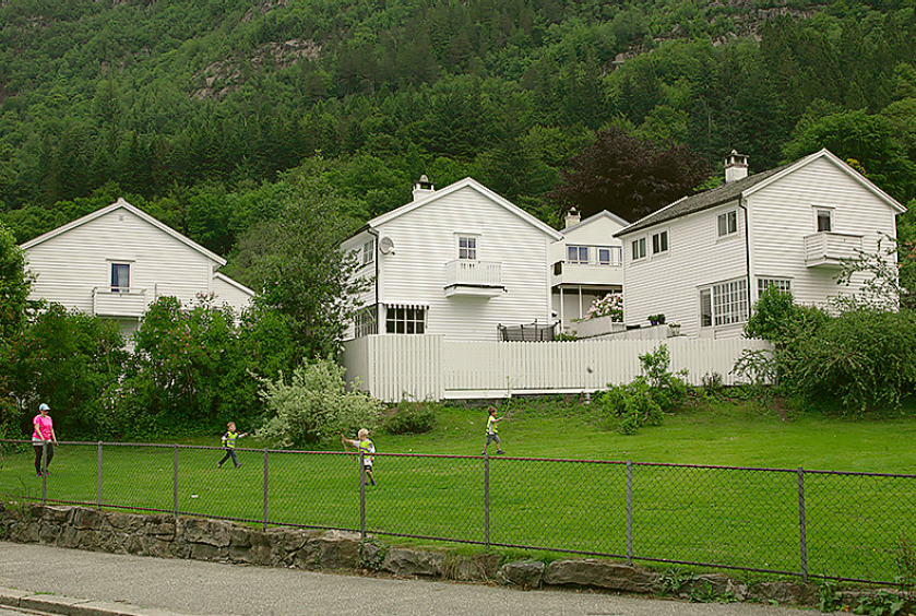 Dette var et av de aller første boligprosjektene til boligbyggelaget Vestbo, tegnet av Peter Andersen og bygget på eiendommen til Sandvikens vakreste lyststed. Det gamle hovedhuset på Frydenlund ble flyttet til Gamle Bergen i 1950. De tre murblokkene i den bratte skråningen nedenfor Amalie Skrams vei utgjør Frydenlund Boliglag. Her er 27 leiligheter, bygningene er avtrappet og sakset for å gi best mulig utsikt. På motsatt side av veien ligger Øvre Frydenlund Borettslag, en gruppe eneboliger i tre. Disse sto ferdig i 1950.