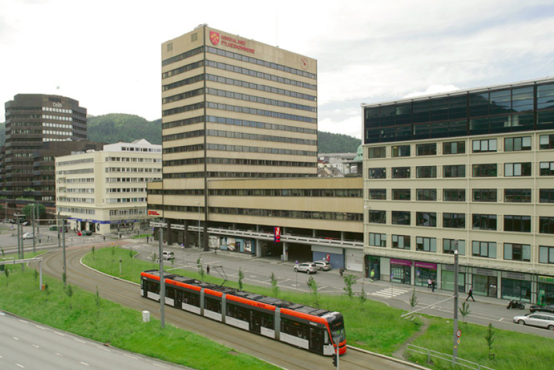 Administrasjonsbygget til Hordaland fylkeskommune er også kjent som NKP-gården. Det ble tegnet av Aage Blich i 1972 og er et tidstypisk kontorbygg bestående av en høyblokk på fjorten etasjer og en lavere vertikal bygningskropp. Under anlegget ligger to parkeringsetasjer, øverst oppe en femtende etasje med tekniske rom.