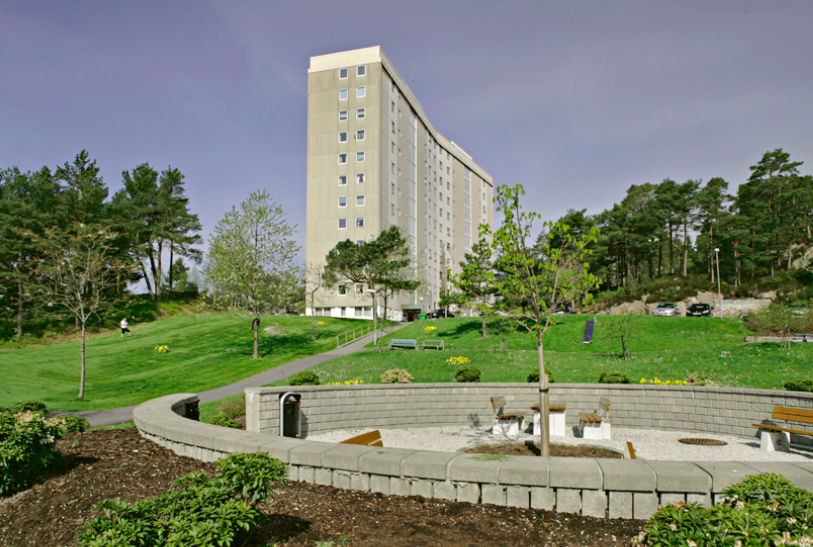 Hesjaholten Borettslag består av tre markante høyblokker med karakteristisk knekk på midten. De ble tegnet av Aage Blich i 1966 for Vestbo og er omgitt av godt opparbeidede parkområder med mye lys og luft.