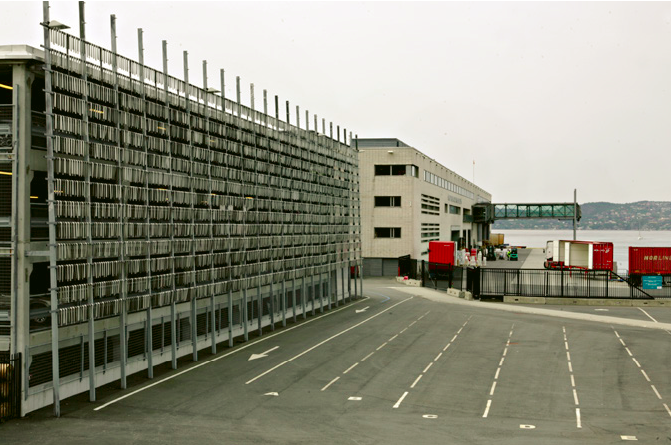 Dette bygget er terminal for Hurtigruten og kontor for Bergen Havnevesen på Nøstet og ble tegnet av 4B Arkitekter i 2006. Anlegget inneholder også et større fryselager. Legg merke til østveggen på parkeringshuset som ligger sør for terminalbygget; en åpen vegg som er dekket med syrefaste stålplater, hengt opp som fisk på hjell.