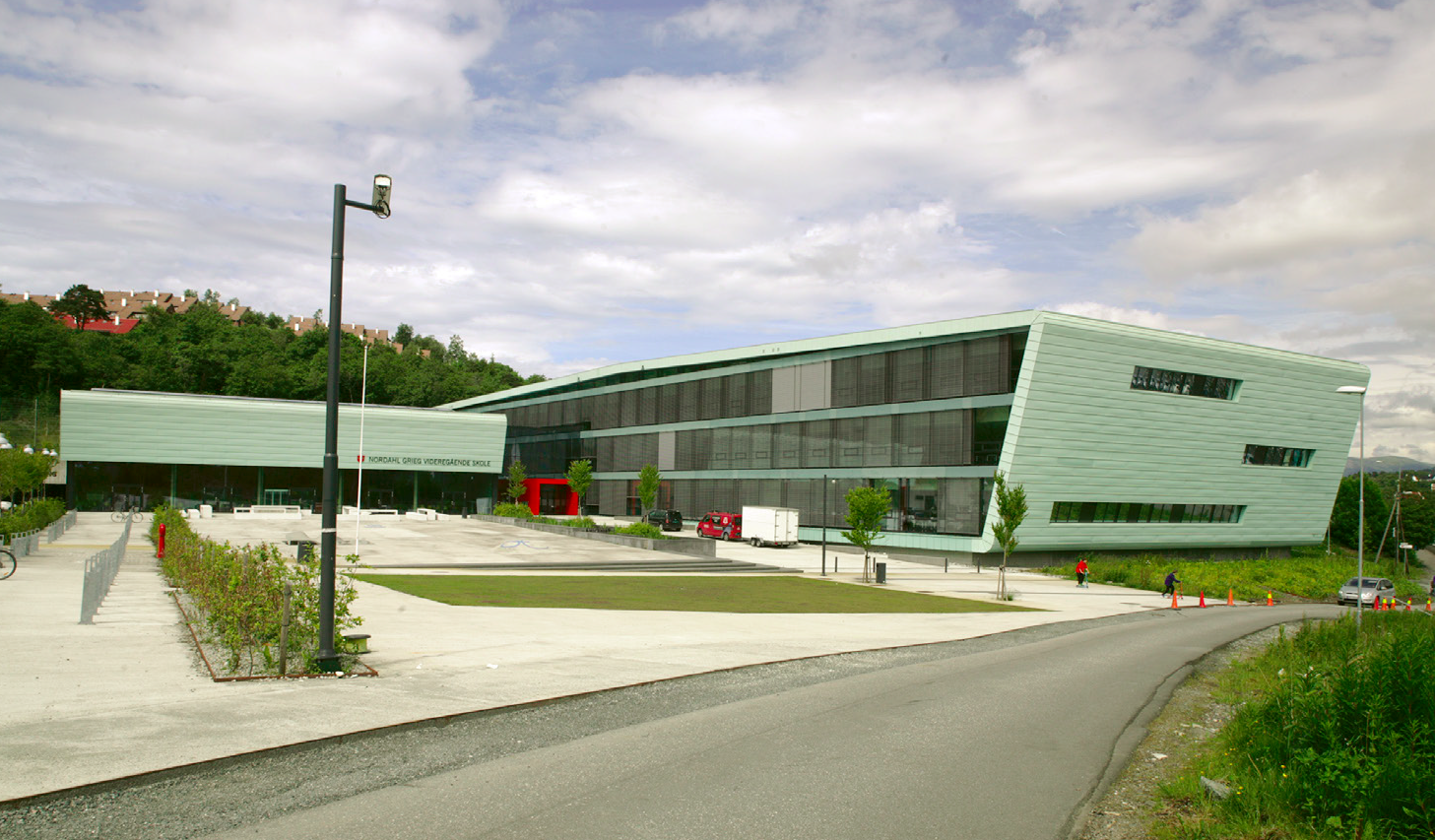 Nordahl Grieg videregående skole ble tegnet av Link Signatur/Smedsvig Landskapsarkitekter i 2010 og tildelt Arkitektur- og byformingsprisen til Bergen kommune i 2011 for sammen med omgivelsene å ha tilført stedet nye kvaliteter i innhold, formgiving og materialvalg.