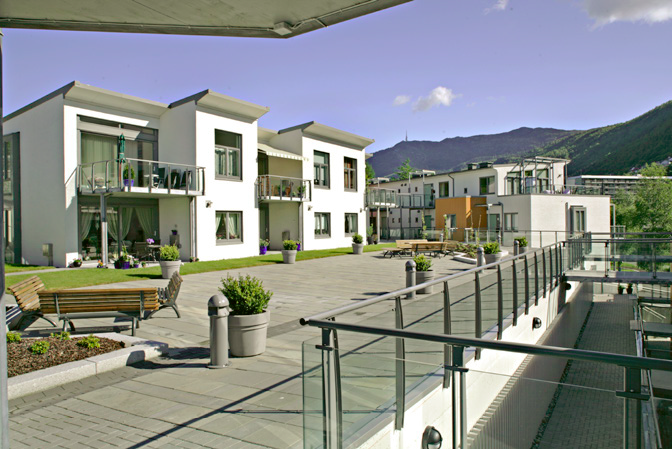 Arkitektkontoret Abo tegnet i 2005 disse fem blokkene med tilsammen 36 leiligheter rundt et felles tun like ved Mannsverk. Under fellesarealet mellom blokkene er det parkering.