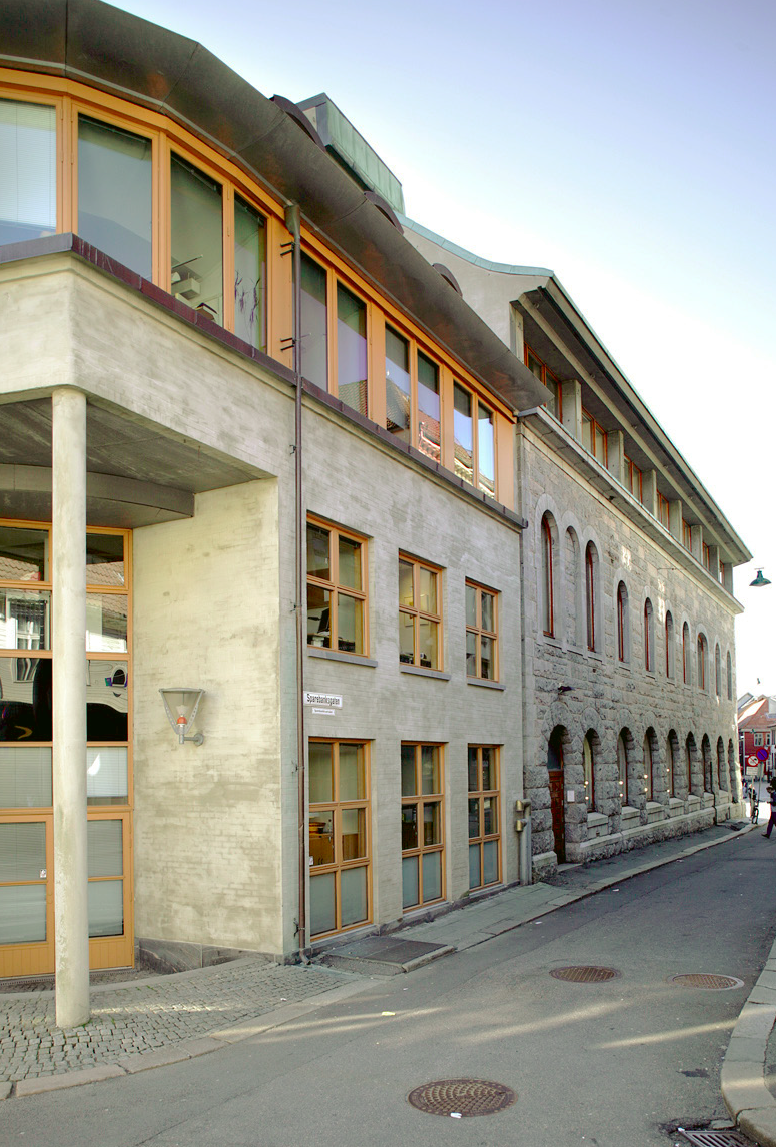 Sparebankkvartalet ble tegnet i 1995 av Myklebust/Pedersen og Ege Arkitekter. Det var nye banklokaler for Sparebanken Vest i fortsettelsen av steinbygningen til Bergens Sparebank som ligger med front mot Korskirkeallmenningen. Nybygget mot Skostredet har skala og materialbruk som samsvarer med de lave husene der. Det er bygget i gråslemmet tegl og er en uvanlig fin innpassing av nytt og gammelt.