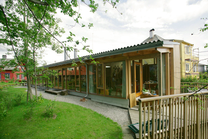 Dette bolighuset ble tegnet av Helge Schjelderup i 2012 og er konstruert som et moderne grindbygg, 24 meter langt og 5,5 meter bredt. Planløsningen er enkel med et stort, sentralt allrom der en markant peis deler kjøkkenet fra stuen. Skråstilte vinduer høyt oppe på langveggen slipper inn lys fra sørøst, en fotsid glassfasade fanger kveldssolen. Huset har furu i bærende konstruksjoner, panel, gulvbord og ytterkledning og bølgeblikkplater på taket.
