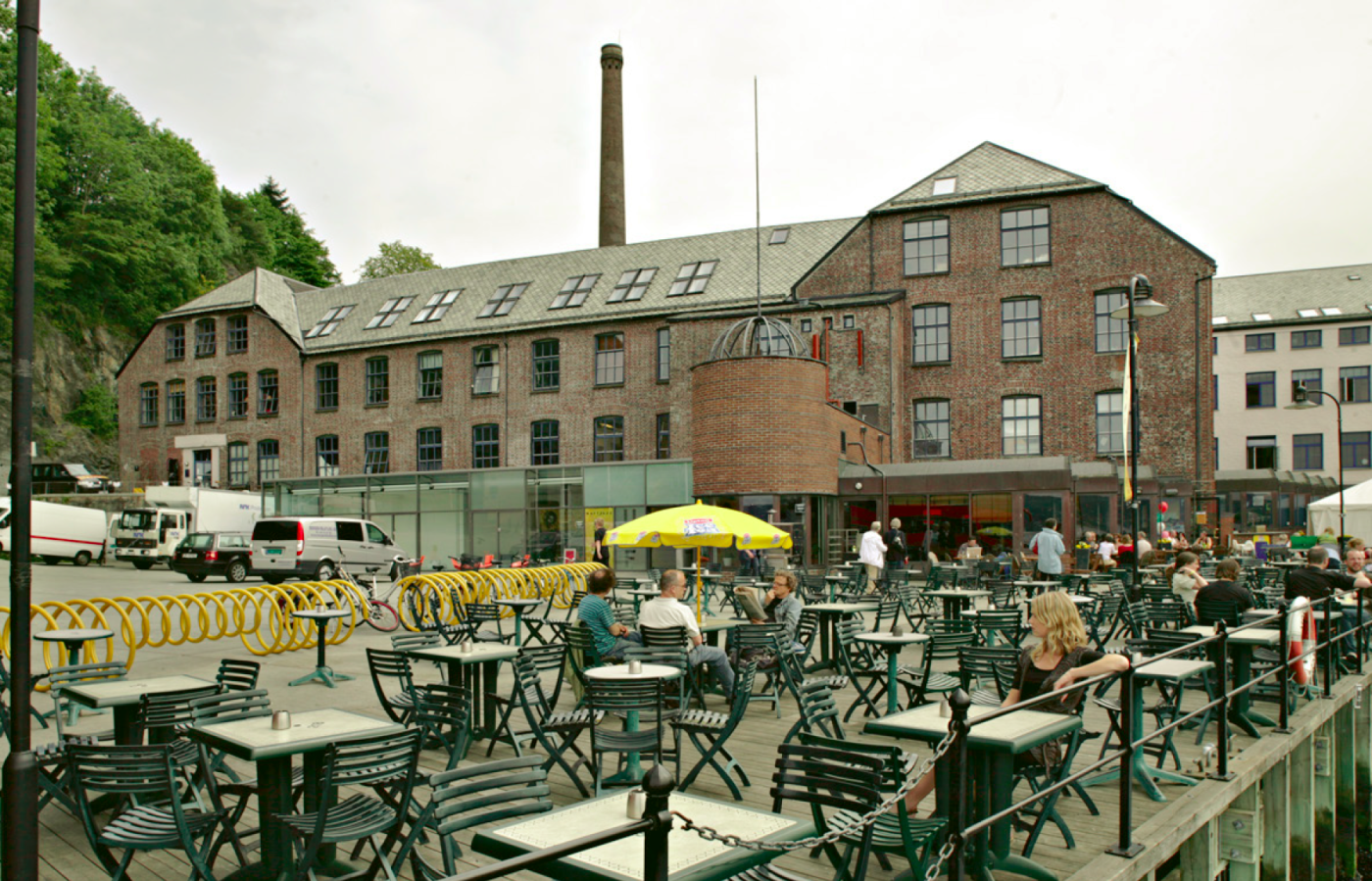 Kulturhuset USF på verftet ble opprinnelig tegnet av Peter Andreas Blix og bygget som tekstilfabrikken Trikotasjefabrikken Petersen & Dekke, senere kalt Pedek, i 1887 av Christian Petersen og Johan J. Dekke. Denne fabrikken brant i 1892, men ble gjenreist samme år. Bygningen ble påbygget i 1915 av arkitekt Sigurd Lunde for United Sardines Factory (USF), som drev landets største sardinfabrikk her.