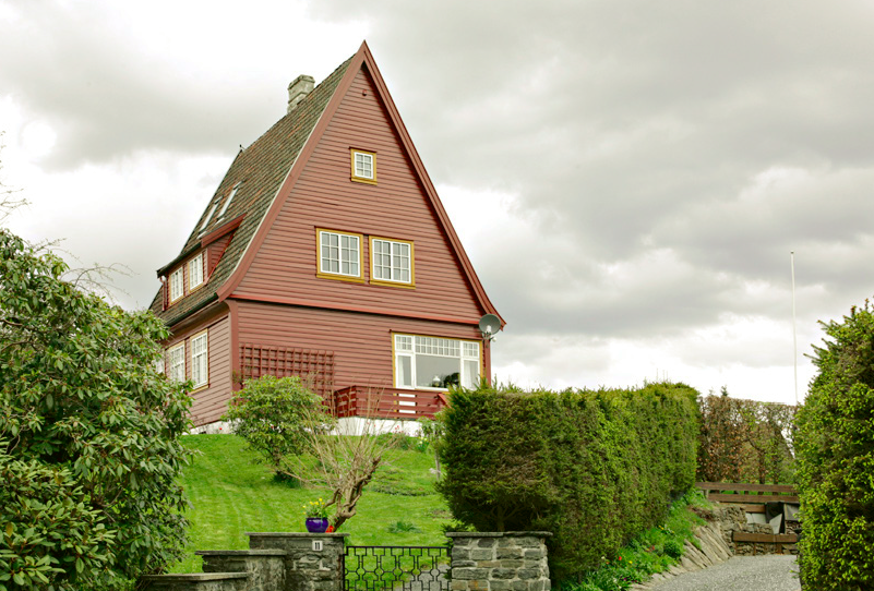 Nordahl Griegs vei 11 var forfatteren Nordahl Griegs barndomshjem Haugen på Hop. Huset ble tegnet av Gerhard Fischer i 1912. I nabolaget har Hans W. Rohde tegnet de fleste bolighusene.