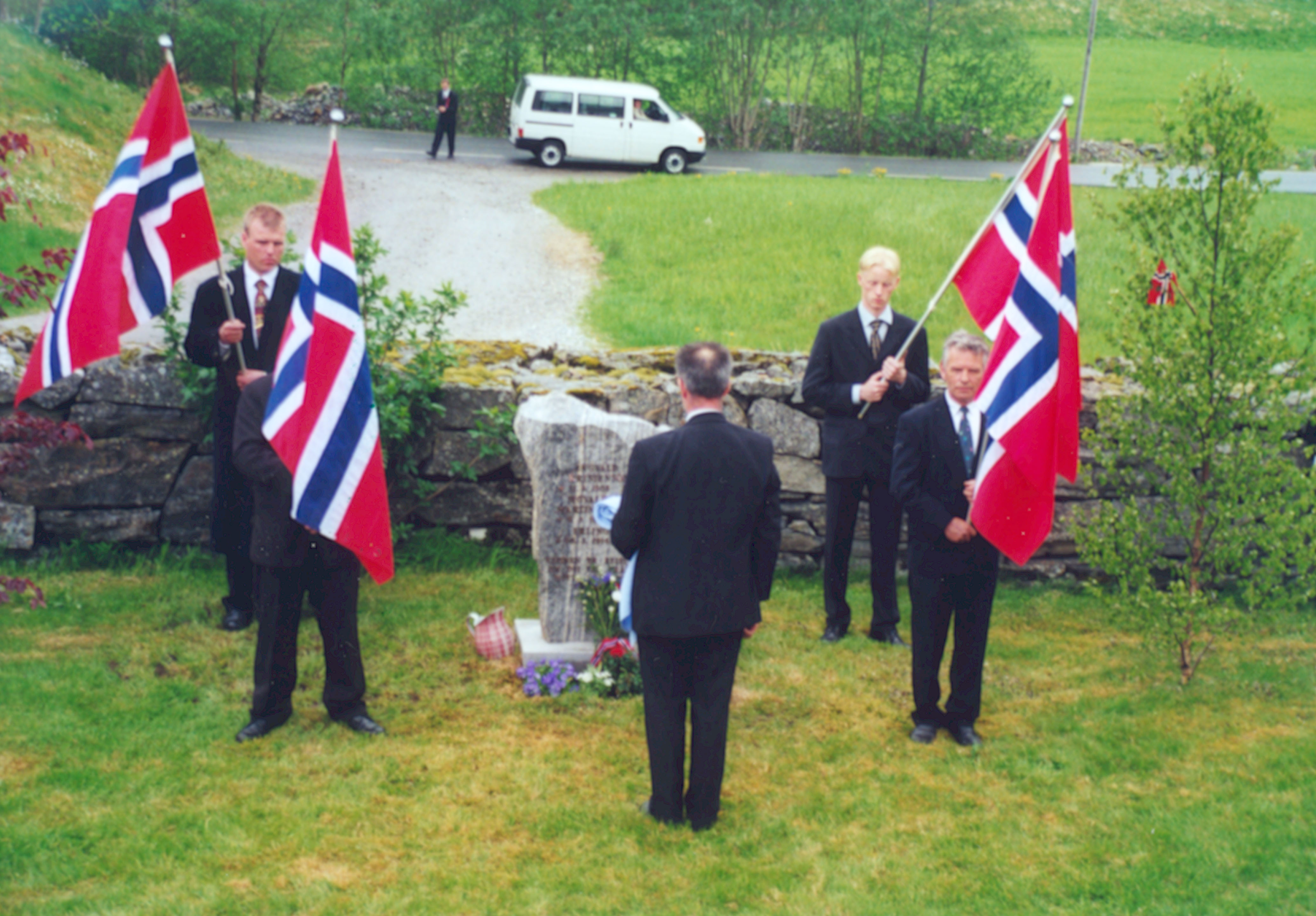 Minnesteinen vart avduka 17. mai 2000, og varaordførar Roar Førde heldt avdukingstalen.