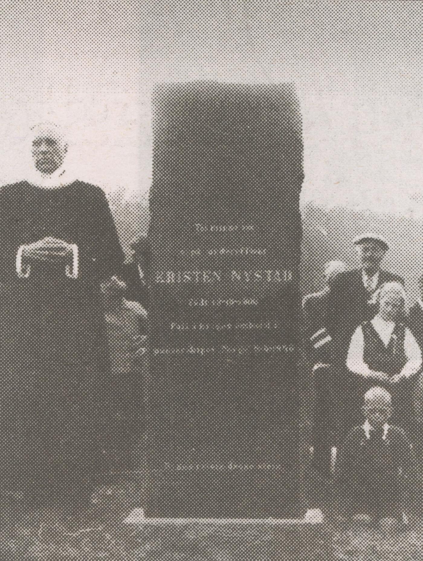 Til minne om * v.pl. underoffiser * KRISTEN NYSTAD * født 13-10-1906 * falt i krigen ombord i * panserskipet "Norge" 9-4-1940 (Nede på steinen:) Bygda reiste denne stein