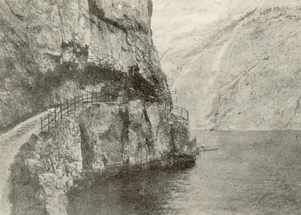Anlegget Raudbergbukti - Fleskheller vart i 1841 sett bort til landhandler Johannes Møller. Raudberg gjekk bratt ned i sjøen og vidare 10 famnar djupt. Vegen måtte difor hoggast inn i fjellet. Det var ikkje så langt stykke, men det vart for vanskeleg for Møller som hadde satsa på å leiga kunnige folk til å gjera arbeidet. Fagfolka tok seg heller arbeid hjå kaptein Finne som hadde meir enn nok arbeid oppover heile dalen. I 1843 fekk Møller påtale for dårleg arbeid og skral framdrift.