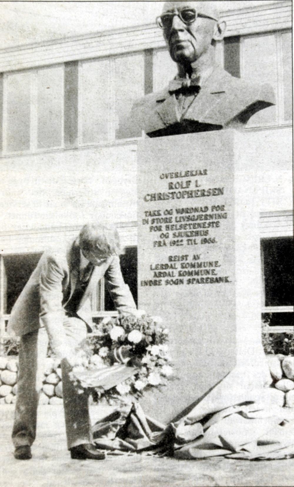 Etter avdukinga overleverte Jørgen O. Vee minnesmerket til Sogn og Fjordane fylkeskommune. Kontorsjef Knut Henning Grepstad tok imot og sa i takketalen sin at fylkeskommunen var stolt og glad for å ta over ei slik gåve, eit minnesmerke over ein svært trugen og dyktig medarbeidar. - Rolf Christophersen var ein av dei som meir enn nokon annan skjønte at personleg innsats var nødvendig for å få sjukehus i Indre Sogn, sa Grepstad.