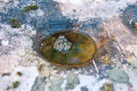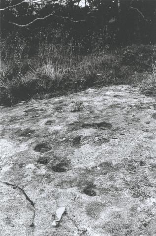 I 1941 observerte arkeologen Per Fett tre lokalitetar med skålgroper (gropeberg) ikkje langt frå kvarandre ved staden kalla Øpstestølen. Det eine feltet ligg kloss i stien. På ein slakt skrånande bergflekk kring 2 x 2 meter er det lett å få auge på små, runde groper. Dei ligg tett i tett og er av ulik storleik. Den største har ein diameter på 10 cm og er mellom 3 og 4 cm djup. På alle sidene av bergflekken gror det gras og mose innover berget, og det kan godt vera det gøymer seg fleire groper under grolaget. Somme som stoggar her vil spørja: Kva er no dette for noko?