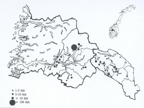 Arkeologen Sonja M. Innselset har forska på helleristingane i Sogn og Valdres. På 1990-talet visste ein om vel 2700 skålgroper i Sogn og vel 700 i Valdres. I Sogn har Luster har flest med 160 felt fordelt på 41 ulike lokalitetar, Aurland har ristingar på sju stader, i Lærdal er påvist opp imot 50 groper, i Vik 39, og i Leikanger tre felt på Svolset med over 100 groper og kring 140 groper ved Kjerringamyri. I Årdal og Sogndal er det derimot til denne tid ikkje påvist skålgroper.