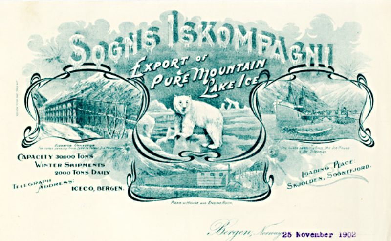 Seinare var det i regi av Sogns Iskompagni "isatrafikk" i Skjolden fram til 1914. Forretningskonseptet gjekk ut på å hausta store mengder is om vinteren, lagra isen temperaturisolert i eit enormt ishus og så ta ut frå lageret og omsetja utover våren, sommaren og hausten. Jamnt og trutt skulle frakteskipa dampa ut fjorden lasta med beste sort is frå Eidsvatnet til kjøparar i Bergen og ute i verda, i Storbritannia og på Kontinentet. Dette skjedde nok òg, men på ingen måte i så stort omfang og så regelmessig som gründarane hadde fantasert om eller håpa på i starten. Å driva isbruk var ei usikker næring.