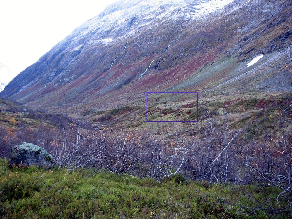 Stølen ligg på ei langstrekt moreneavsetjing på sørsida av elva. Her ligg fire tufter, alle orientert aust-vest. På to av murane ligg att ein god del trevyrke, på dei to andre ingen ting. Framfor tufta lengst vest står ein tverrmur eit par meter frå grunnmuren.