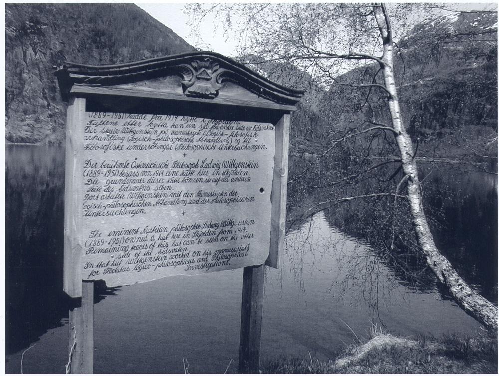 Eidsvatnet med hytta til Wittgenstein, "Østerrike", i lia opp frå vatnet. "Eg kan ikkje førestella meg at eg kunne ha arbeidd noen stader slik eg gjer her. Det er roa og kanskje det vedunderlege landskapet; eg meiner det stille alvoret i landskapet." (Wittgenstein i eit brev i 1936).