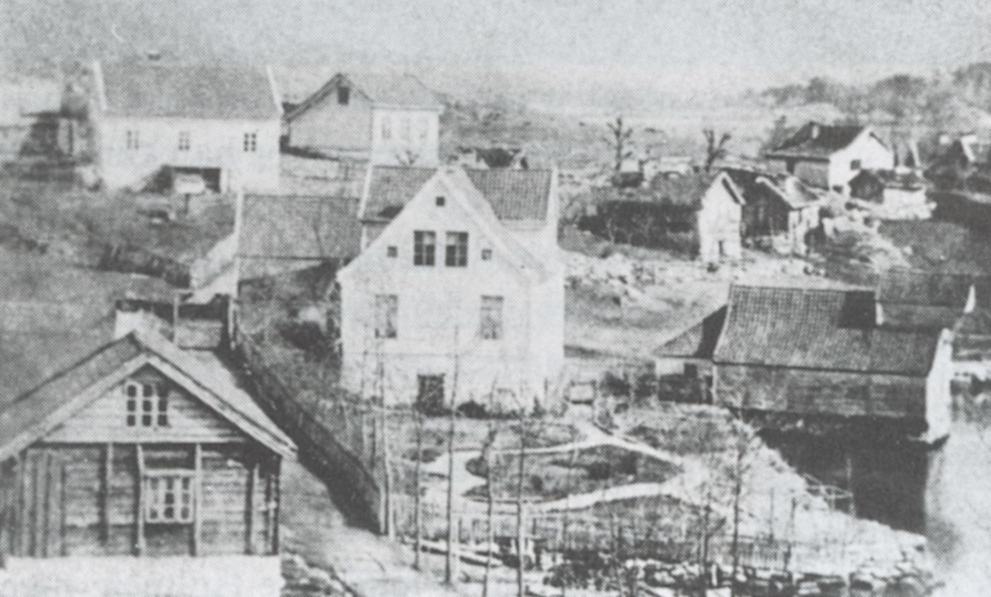 På denne tida hadde Ola Kvikne kjøpt gjestgjeveriet i Holmen, og sentrum tok til å flytta seg frå Lundsviki til Holmen. Dette såg nok Rasmus, og han såg seg etter tomt der. Ola Kvikne såg klårt føremoner med at Rasmus kunne etablera seg i Holmen, og gav han tomt på sin eigedom. Rasmus kjøpte eit kårhus i Ese som han sette opp på tomta. Han bygde på litt i den eine enden som vender mot Holmen. I kjellaren fekk han innreia fargeri, og i første høgda og på loftet fekk huslyden bustad. Rasmus sette òg opp eit uthus nedom bygdevegen som var kombinert naust og grisehus.