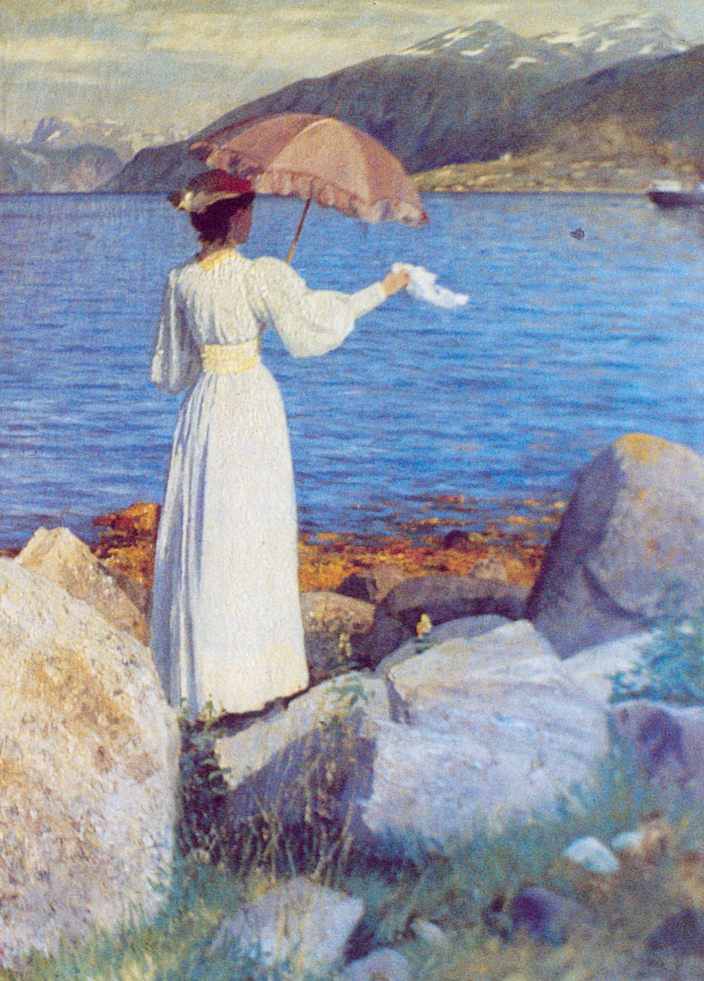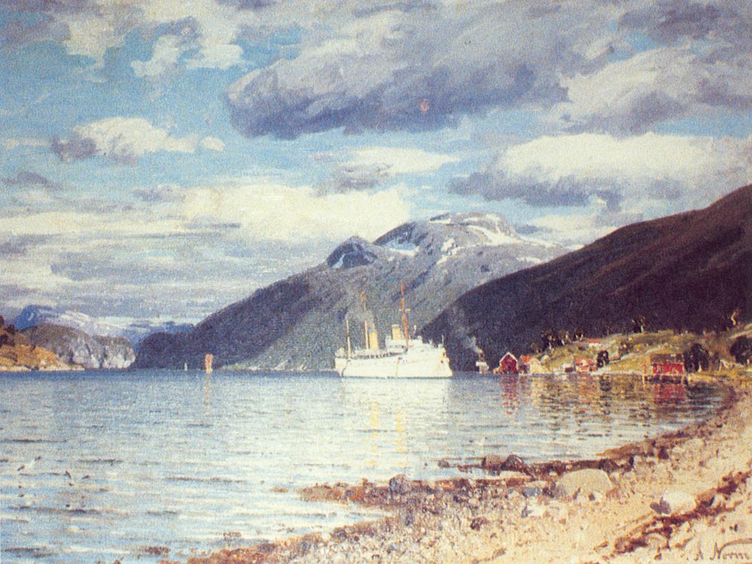 Painting by Adelsteen Normann showing the view towards Vangsnes from 'Villa Normann'.