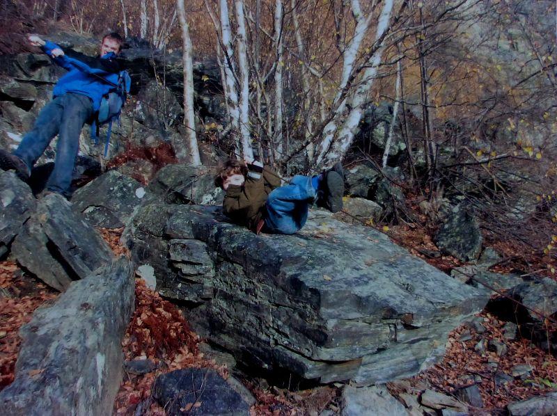 Frå kryssingspunktet oppe i råsa er det råd å følgja løypestrengen vidare oppover, enten ved ta seg rett opp der strengen går, eller ved å gå råsa vidare innover og oppover og så ta av mot høgspentmast, og vidare vestover mot neste mast. Her er og god ur å ta seg fram i. Løypestrengen kryssar under høgspenlina i ein avstand av mindre enn 1 meter. Rett nedom masta ligg strengen nedpå ein stor stein. Oppover frå masta har strengen god høgd til han går or syne i tjukkare skog.