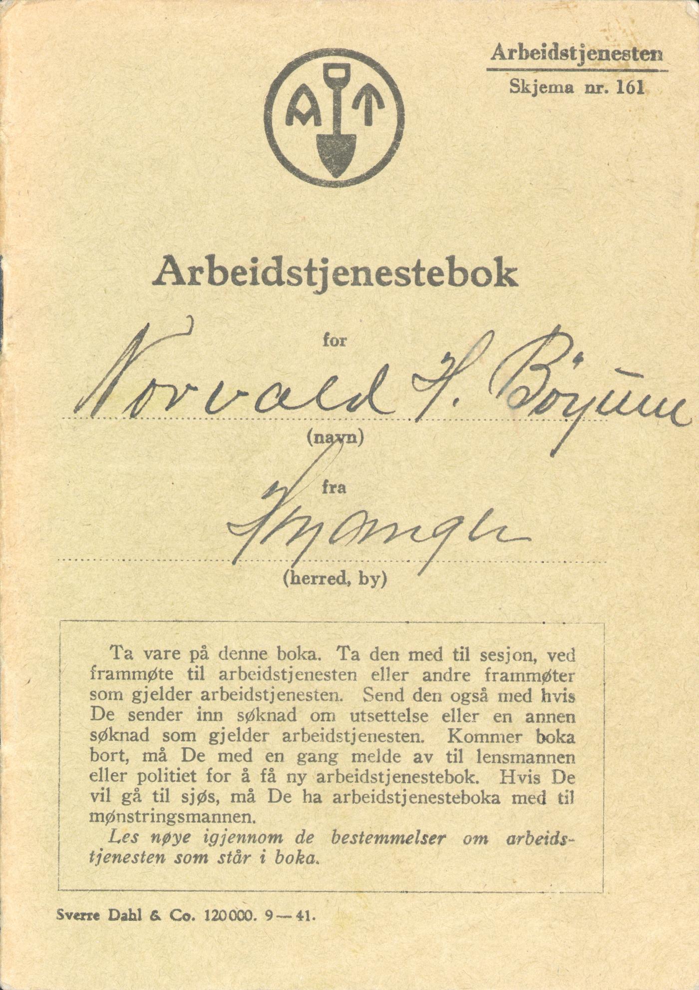 Ved nazi-nyordninga og Quislingministeriet frå 25.9.1940, vart Arbeidstenesta førd vidare, først på frivilleg basis, men seinare ved tvungen utskriving. Dei aller fleste menige mannskapa hadde inga tilknytning til NS-rørsla. Heile ordninga fekk eit militært preg i organisasjon, utskriving av mannskap og øvingsopplegg, men likevel med den skilnaden at dei utskrivne mannskapa nytta spade i staden for gevær og dreiv med vegbygging, skogshogst o.l. i staden for krigsøvingar. Det var og ei arbeidsteneste-ordning for kvinner. Den hadde eit kornaks i symbolet sitt i staden for spade.