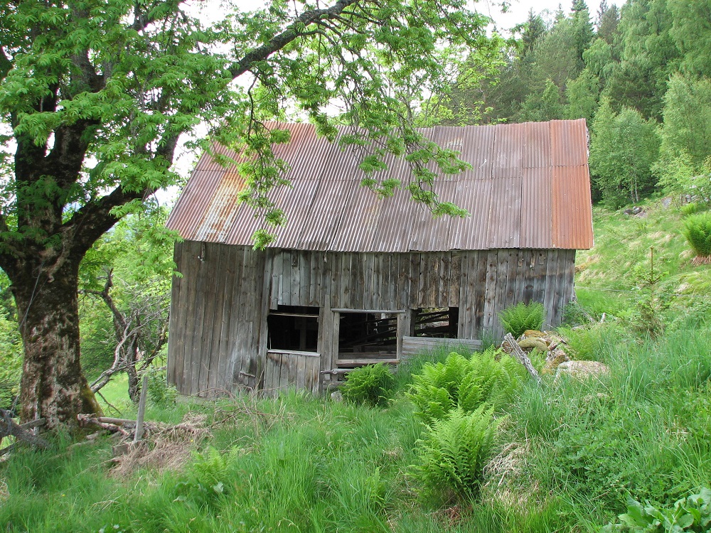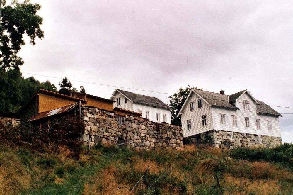 Det siste stykket opp til gardstunet går over ei steinklopp. Vegen deler seg ved fjøsbygningen. Ein veg går nedunder fjøsen bort til hovudhuset, den andre går opp mellom fjøsen og ei sag. Her kjem det ned ein bekk der det renn bra med vatn om våren i snøsmeltinga og når det er mykje nedbør. Elles er det berre ein liten sildrebekk ned i ei hole dei har laga til for å kunna henta vatn.