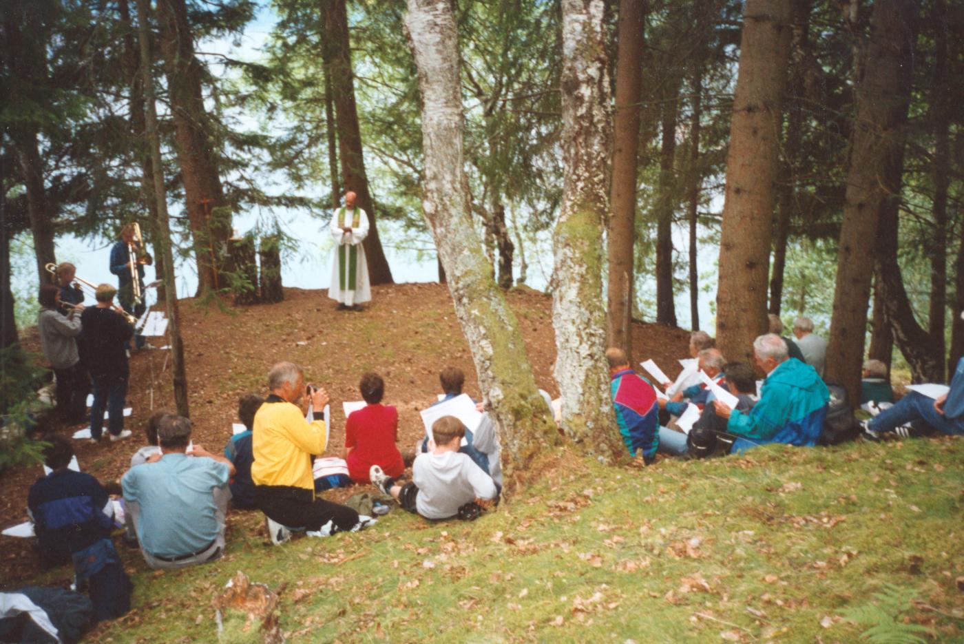 Frå midt på 1950-talet til fyrst på 1990-talet samlast ikkje folk på Syttandemaihaugen, men i 1994 la 4 mann i veg med økser og motorsag. Soknepresten i Leikanger var ein av dei. Trygve Mundal og Mikkel Sjur Eithun hadde kome på at staden ville eigna seg framifrå til friluftsgudsteneste. Presten vart oppglødd frå fyrste stund.