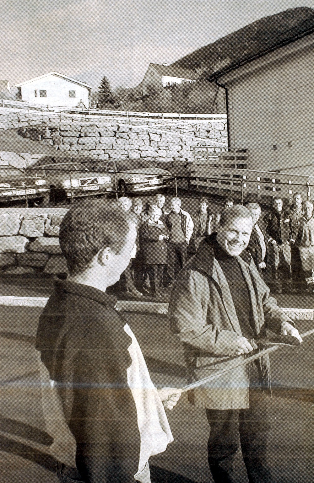 "Stein på stein i mur etter mur", skreiv Sogn Avis i reportasjen frå opninga. På den 650 meter lange vegstrekninga er det 400 lengdemeter mur med høgdesnitt på 4,5 meter. Den største muren er ved tunet til Nils Husum. Der måtte dei byggja to murar oppå kvarandre, den eine på fire meter, den andre på 11 meter. To mann stod føre muringa. I kvar si gravemaskin la Odd Ølnes og Arne Berg på plass 3000 kubikkmeter gråstein. Av og til hende det at forbipasserande stogga og såg på. Dei var imponerte over karane i gravemaskinane.