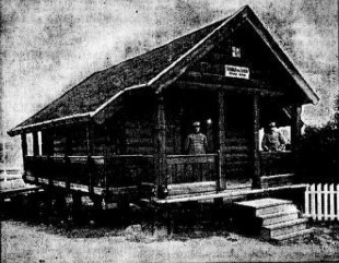 Stabburet frå Sogn og Fjordane på jubileumsutstillinga i Kristiania 1914. Byggmeister John Hove i Vik bygde stabburet. Godseigarane Heiberg og Knagenhjelm på Kaupanger og Rumohr på Franningen gav tømmeret. Avisa Sogningen, Vik, skreiv at det var eit typisk «Vestlandsstabbur», 9 x 6,5 m, med svalgang på framsida og langsidene.
