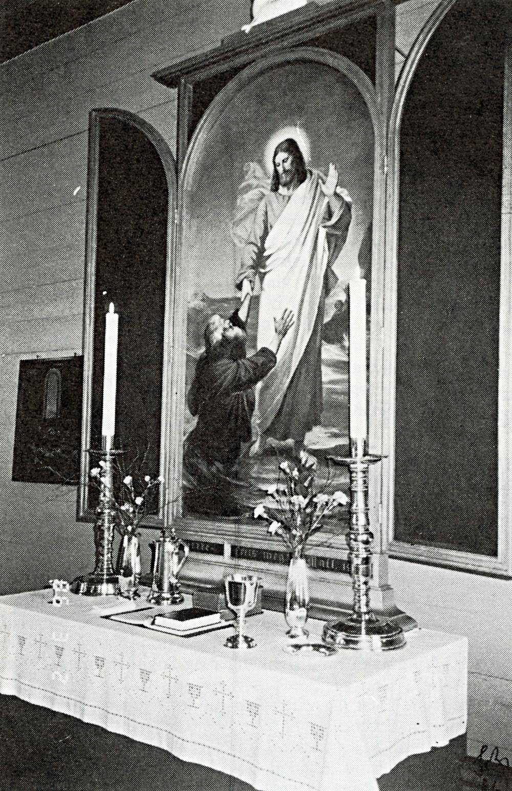 Ei anna endring som fall endå mindre i smak hjå kyrkjelyden, var den nye ramma rundt alterbiletet som arkitekten ordna med. Den gamle vart sett vekk i kyrkjetårnet, men ikkje gløymd.