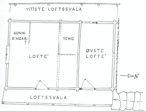 På begge dei to gardsbruka på Stølen var det frå gammalt av mange små hus, stove, fjøsar, løer, eldhus, bu og loft. Den gamle sperrestova vart nedriven i 1922 då nytt våningshus vart bygt. Ny driftsbygning kom i 1953, og då vart den gamle løa og fjøsen rivne. Då var òg loftet sin opphavlege funksjon på garden over. I loftet vart seng- og gangklede plassert, og romma vart nytta til soveplass om sommaren, t.d. når det kom gjester til gards. I eldre tider er det òg rekna med at korn vart lagra på loftet.
