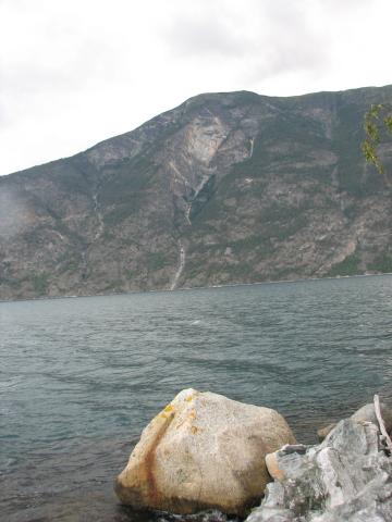 Ei gamal segn fortel at i Lærdalsfjorden budde to risar. Den eine budde på Tronenakken som ligg på nordsida, og den andre budde på Klovsteinhalsen på sørsida av fjorden. Desse to risane var uvener, og risen på Tronenakken kasta ein stein for å drepa risen på Klovsteinhalsen. Men steinen var nok litt for stor, for risen greidde ikkje å kaste den langt nok, og steinen landa difor i fjøresteinane.