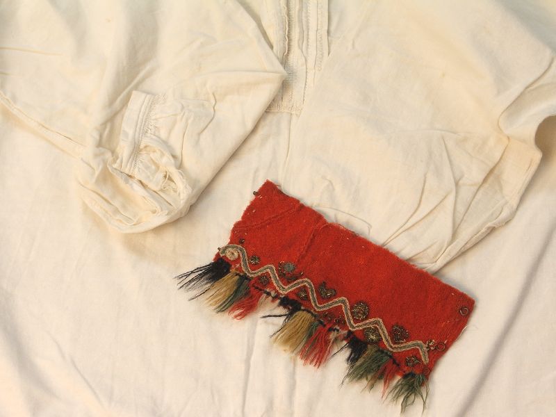 Om vi tar utgangspunkt i kva materialar og fargar som har vore brukt, kjem vi også fram til same tidfesting: Bomullsstoff var ikkje i vanleg bruk før ut på 1800-talet. Før det vart gjerne lin brukt i til dømes fôr. På slutten av 1800-talet kom nye, sterke fargar som lilla, cerisraud og sterke grøne og gule fargar på importert ullgarn. Ut i frå desse opplysingane er dei broderte og hekla lausmansjettane i NFM si samling, frå slutten av 1800-talet eller seinare, ettersom dei har sterke raude, grøne og lilla fargar. Ein av lausmansjettane er eldre. Det er den sydde lausmansjetten på det store biletet. Denne er i raud ull med linfôr og ullfrynsar, materialar og fargar som er brukt har vore i bruk lenge, og det kan vere at lausmansjetten er heilt i frå 1700-talet.