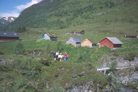 «I gamle dager var det også geiter på stølen. Desse stod i eiga avdeling i fjøset eller i eigne fjøs. Fram til slutten av 1950-talet var her 8 bruk som støla med omlag 60 dyr, derav 45 mjølkekyr.