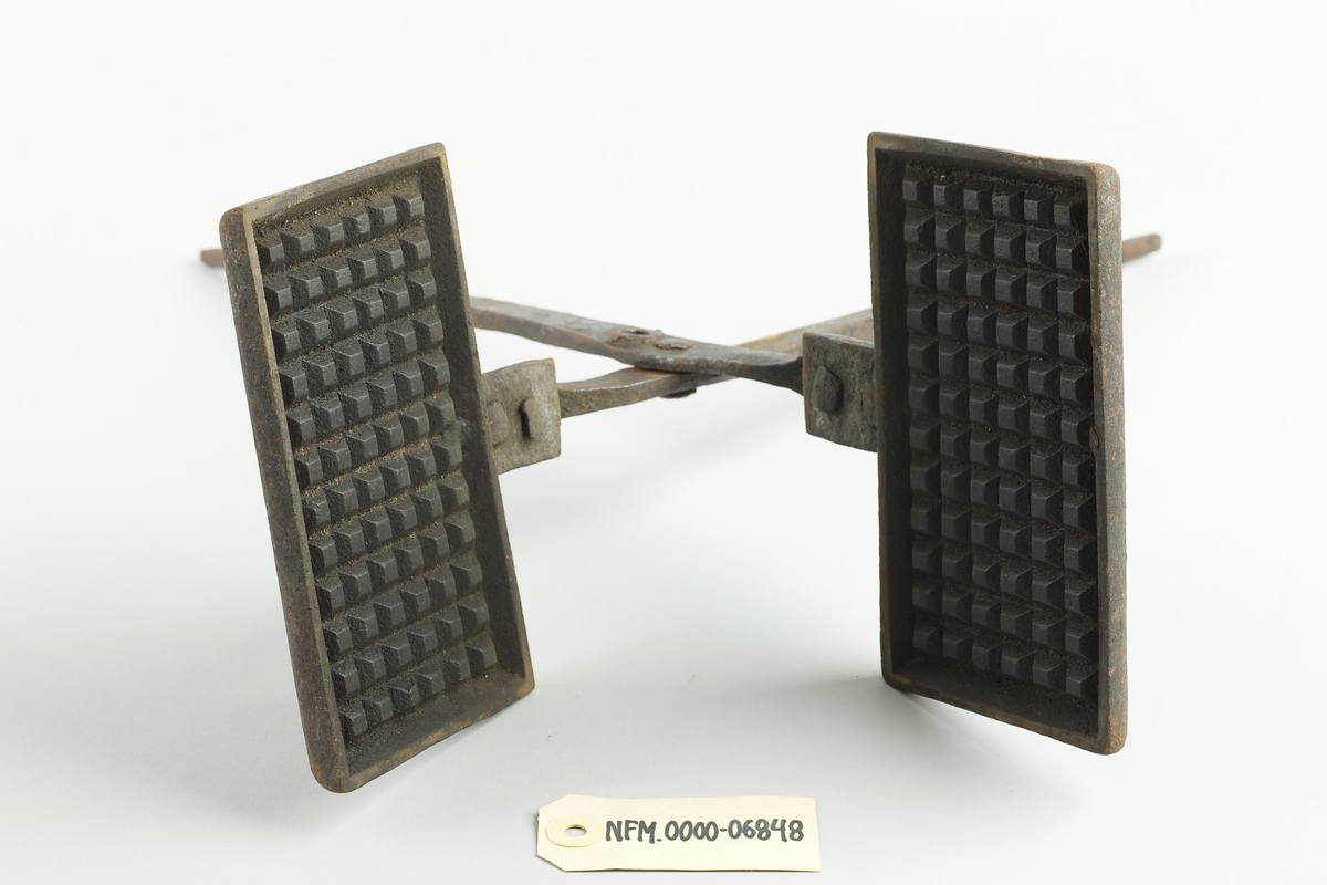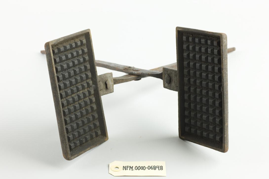 Det eldste vaffeljernet i Noreg finst så vidt vi veit på Norsk Folkemuseum, og er frå 1685. Denne typen jern lagde einskilde rektangulære eller einskilde hjarteforma vaffelkaker. På Nordfjord Folkemuseum har vi mange rektangulære vaffeljernformer, sjå til dømes bilete 1 og 2. Desse har lange skaft og er særs tunge. Røra vart helt i jernet, jernet vart lukka og halde over open eld eller glør under steikinga.